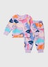 Learn moreThis pyjama set features a purple long-sleeved top and matching pair of bottoms, both printed with cute and colourful dinosaurs and enchanting rainbows. An elasticated waistband and ribbed cuffs for extra comfort round off the pack.