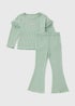Girls Sage Ribbed Flower Top & Flare Set (1-7yrs)