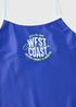 Learn moreThis one-piece swimsuit is adorned with a vibrant “West Coast” print, showcasing a spirit of energy and youthfulness. Crafted from high-quality fabric, it ensures durability and resistance against chlorine and UV rays. The white contrasting straps offer adjustable fitting while ensuring ease of movement during every swim. Dive into style with this eye-catching blue swimsuit that promises an excellent fit and utmost comfort.