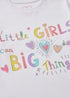 Learn moreIntroducing our Girls White Little Girls Slogan T-Shirt - a perfect blend of comfort and style for your little one! Adorned with the colourful and inspiring message “Little Girls Can Do Big Things,” this white tee is designed to boost confidence while ensuring maximum comfort. Made with soft, breathable fabric, it’s suitable for all-day wear, whether indoors or out. The vibrant text and playful designs add a touch of charm, making it a favourite choice for young girls ready to take on the world!