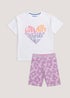 Learn moreCute and comfy in equal measure, this sweet slogan pyjama set will become her new go. Crafted from soft stretch cotton, the pyjama set features a white PJ top finished with a retro-inspired, hippy chic typography, captioned ‘Love more, inspire, smile’. A pair of lilac, floral print cycling shorts are also included to complete the duo.