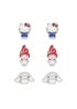 These adorable Hello Kitty & Friends mix-and-match stud earrings are perfect for any Hello Kitty enthusiast. Whether you're treating yourself or surprising a loved one who adores Hello Kitty, this set comes with three charming pairs of earrings! This Hello Kitty earring set features three unique earring designs which include Cinnamoroll, My Melody, and a delightful standing Hello Kitty with her signature bow. Presented in an official Hello Kitty gift box.