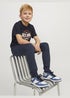 Keep your child comfortable and stylish with the Jack & Jones Kids navy jogging bottoms. These versatile and trendy joggers are perfect for active days, casual outings, or simply lounging at home. Designed with both fashion and function in mind, they are a must-have addition to any child's wardrobe. The 2 side pockets and the side logo in white makes sure that these jogging bottoms combine both style and practicality. Pair with a t-shirt and trainers for a casual and comfy look or pair with a shirt and shoes for a smarter look.