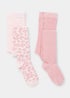 Kids 2 Pack Pink Plain & Leopard Print Tights (2-9yrs)