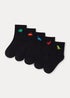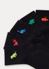 Kids 5 Pack Black Dinosaur Embroidered Socks (Younger 6-Older 6.5)