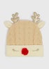 Kids Beige Reindeer Novelty Beanie (3-13yrs)