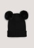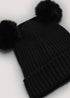 Kids Black Double Pom Pom Beanie Hat (3-13yrs)
