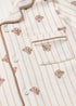 Keep bedtime timeless with this Cream Bear Pyjama Set in a soft, creamy hue. Featuring a traditional button-up top and matching bottoms, this set is decorated with a sweet bear print that brings a touch of woodland whimsy to every night. Crafted from soft fabric, these pyjamas offer all-night comfort while the elasticated waistband ensures a perfect fit for growing kids. The classic design with contrast piping adds a touch of vintage charm — perfect for little adventurers who love cosy, traditional styles.