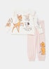 Who doesn't love a bit of classic Disney? Printed with Thumper, Bambi, Lucky, Dumbo, Marie and Simba to showcase some iconic animated animals, this set comes complete with a cream, frill shoulder top, along with a stretchy pair of pink bottoms. Both pieces in this set are rounded off with cosy cuffs.