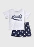 With a touch of style and comfort with the Kids Navy Pyjama Set, available for ages 18 months to 13 years. This charming set features a crisp white t-shirt emblazoned with the phrase “Dad’s Bestie” in a bold navy font, underscored by a playful swoosh. The coordinating navy shorts are adorned with an array of classic white stars, adding a whimsical yet patriotic flair to the ensemble. Crafted from soft, breathable fabric, this pyjama set ensures your little one stays comfortable all night long while honouring their beloved dad. Whether for lounging or sleeping.