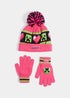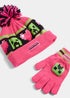 Kids Pink Minecraft Heart Bobble Hat & Gloves Set (3-10yrs)