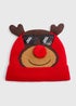 Kids Red Reindeer Christmas Beanie (3-13yrs)