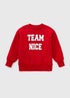 Complete your little ones festive wardrobe with our Kids Red Team Nice Sweatshirt. Made from a soft and cosy cotton blend and featuring a fun family slogan in a varsity print. Let your little one team it with jeans or leggings for a stylish and comfortable Christmas look. Part of our joyful trend, combining warmth, style, and comfort to bring a cosy and vibrant touch to your style.