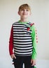 In the classic black and white stripe, this long-sleeve children's top features our adorable dinosaur applique. Crafted from ultra-soft 100% GOTS-certified organic cotton, it offers comfort perfect for outdoor play or cozy sofa snuggles on colder days. Ideal for those crisp days when comfort and style go hand in hand.