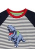 In the classic navy and white stripe, this long-sleeve children's top features our cute dinosaur print. Crafted from ultra-soft 100% GOTS-certified organic cotton, it offers comfort perfect for outdoor play or cozy sofa snuggles on colder days. Ideal for those crisp days when comfort and style go hand in hand.