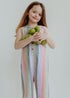 Made from our woven rainbow stripe fabric, this wide leg jumpsuit dungarees are a great choice for all day comfort. Find nickelfree popper fastening to the bodice for easy peasy dressing.