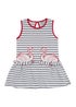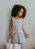 Perfect for your little dancers, our sleeveless tiered aline dress features our stripe pattern and our applique swans that your kids will love.