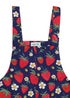 Made from 100% GOTS organic woven fabric, these strawberry dungarees are a great sustainable, ecofriendly and nonseasonal choice for girls.