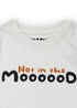 Featuring the cheeky slogan "Not in the Mooooood" in a bold, playful font, this t-shirt brings a touch of humor to everyday outfits. The easy shoulder poppers (up to 12-18m) make dressing a breeze, while the relaxed fit ensures all-day comfort. Great for pairing with our Cow Print Joggers or Star Leggings for a coordinated look.