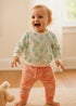 Featuring an all-over peacock feather print in calming teal with heart-shaped accents, this sweatshirt adds a touch of elegance to everyday wear. The contrast ribbed trims at the neck, cuffs, and hem add a playful pop of colour and ensure a snug, comfy fit.
