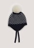Learn moreBaby will look absolutely delightful in this snuggly trapper hat. Cut with soft and cosy navy fabric that's detailed with a diagonal knit design for added style, the pompom at the top ensures extra charm, while the two fastenings help to keep it secure on their head.