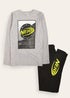 Learn moreThese Nerf pyjamas a perfect for you little one to relax in after an action packed day! This pyjama set includes a grey marl long sleeve top with a large graphic print, paired with black cuffed bottoms. This set is cool, comfy and perfect to take on all Nerf battles!