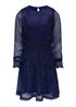 This midnight blue party dress from ONLY comes with sparkle, along with sheer sleeves and an elasticated waist. It's the perfect dress for the colder seasons. * Midnight blue * Sheer sleeves * Elasticated waist * Cuffs at sleeves * Button fastening at back ** _Everything you love about ONLY is what we got for our little fashionistas, scaled down to sizes 104-164. This collection is for the girl who naturally stands out from the crowd in her fashionable outfit and cool attitude. We make sure you have everything you need for your kids to rock the schoolyard, playground or streets. ONLY place a strong focus on affordable fashion centred around must-have denim items, adding a cool street style vibe to the little one's wardrobe._**