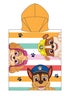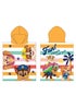 Perfect to wear on the beach or after swimming, this poncho has a hood, and open sides for comfort. This small sized hooded Paw Patrol towelling poncho is ideal for toddlers and features a bright summery striped background. On the front side there’s a large print of Chase, Skye and Rubble with paw prints dotted around, while on the reverse the Paw Patrol gang are enjoying a day at the beach with ‘Fun under the sun’ written above.
