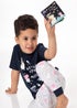 Join George Pig on his next space mission with character friends Rebecca Rabbit, Mr Elephant, and Daddy Pig with this adorable George Pig pyjamas set that comes with a bedtime story 'A Trip to the Moon', perfect for boys and girls! Awesome for keeping your little ones comfy whilst watching their favourite kids show or reading their bedtime story, these Peppa Pig pjs come with a short sleeve navy top and grey long length bottoms. The George Pig t-shirt showcases fan favourite characters in space astronaut outfits with text reading 'George's Space Mission'.