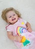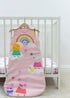 Loved by children of all ages, Peppa Pig is colourful, fun, and a great role model. Our officially licensed My First Sleep Sack is finished in a soft powder pink, featuring Peppa Pig with her baby brother George, Suzy Sheep, and Candy Cat on fluffy clouds with colourful stars and a rainbow.