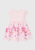 Introducing our Pink Scuba Dress for little girls aged 1-7 years - a perfect blend of comfort, style, and elegance. The dress features a soft pink bodice that ensures maximum comfort and is gentle on the skin. The round neckline and short sleeves make it suitable for both casual and special occasions. The highlight of the dress is its beautifully flared skirt adorned with vibrant floral prints, adding a touch of spring to any day. Easy to wear and take off, this dress promises both style and convenience for your little one.