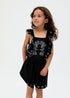 Raffya Kids Black Philo Ruffle Neck Embroidered Playsuit (3-9 Years)