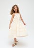 Raffya Kids Ecru Swish Pin Tuck Embroidered Dress (3-9 Years)