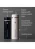 Make fresh formula feeds on the go with this clever set featuring two flasks — one stores boiling water to kill bacteria, and the other cools the feed to the perfect temperature in just two minutes*. The easy-to-read LED display on the lid shows a star that changes colour to tell you when the feed is ready: red means too hot, blue means perfect.
