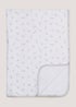 Learn moreCute and cosy, this classic baby blanket has been crafted with delicate skin in mind. Made from sumptuously soft and snug fleece fabric, the white blanket features a grey safari print to one side, a plain reverse and grey stitched edging. It comes bundled in a pretty ribbon, making it perfect for new baby gifting. Dimensions: 100cm x 75cm.