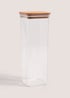 Keep your food fresh for longer with the help of this handy storage design. Fashioned with clear plastic so you can easily see the contents, it comes complete with a wooden lid to help prevent your food from going stale.