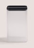 Keep your essentials safe and secure in this handy storage unit. Created with clear ribbed plastic so you can easily see what's inside, it comes complete with a timeless black lid that'll seamlessly slot into just about any home. Dimensions: 22cm x 14cm. Capacity: 2L.