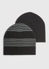 Keep your head cosy and stylish with our two-pack of beanies in black and grey colour. One plain black and the other black and grey striped. These one-size beanies are made from a soft and durable acrylic fabric that will keep you warm even on the coldest days.