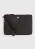 Your perfect companion for those on-the-go moments, this pouch is made with precision and boasts a sleek black design adorned with a sophisticated chevron pattern that exudes elegance and style. The golden bee emblem, gracefully positioned at the centre, adds a touch of luxury and signifies supreme quality. With its spacious interior, durable zipper closure, and convenient wristlet strap, the Black Bee Pouch marries functionality with fashion, ensuring all your essentials are housed in style.