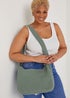 You'll enjoy a shopping trip or day out with this uber stylish slouch bag. Created with comfy yet sturdy macrame fabric, the green bag comes in a crossbody design for versatile wearing options. Finished with a spacious interior and a secure zip fastening, it'll make a fine addition to your bag collection. Model Height: 5ft 10. Dimensions: H25cm x W38cm x D7cm.