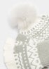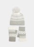 Grey & Cream Fair Isle Bobble Hat & Fingerless Gloves Set