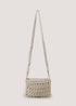 Store your essentials in style with this stunning cross body bag! Fashioned with a sleek natural tone, it features gorgeous gold hardware for an elegant touch and a zip closing for added security. Crafted with a trendy macrame fabric, it's the perfect everyday bag. Dimensions: H20cm x W26.5cm x D2.5cm.