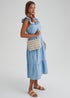 Learn moreStore your essentials in style with this stunning cross body bag! Fashioned with a sleek natural tone, it features gorgeous gold hardware for an elegant touch and a zip closing for added security. Crafted with a trendy macrame fabric, it's the perfect everyday bag. Dimensions: H20cm x W26.5cm x D2.5cm.