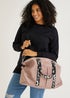 Learn moreGetting ready for the weekend is a breeze with this durable and uber stylish bag. Featuring a contrast web strap to add that extra bit of interest to the design, it comes with a nude base colour and a central zip fastening to keep the contents of the spacious bag safe and secure. Dimensions: 34cm x 46cm x 16.5cm.