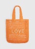 Welcome the sun-kissed days of summer with our vibrant Orange Love Shopper Straw Bag. Crafted from eco-friendly, woven straw, this shopper is the epitome of style and sustainability. Its spacious interior and sturdy construction make it the perfect companion for all your summer adventures. Featuring bold orange accents that mimic the hues of a breathtaking sunrise, this shopper will add a pop of colour to any outfit. The double handles provide a comfortable grip, while the open design allows for easy access to your belongings.