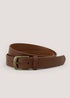 Simplicity is key with this PU belt, which is finished in tan and fastens with a brushed gold metal buckle fastening. The ideal accessory for your trousers.