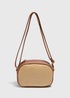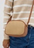 Tan Straw Camera Cross Body Bag
