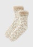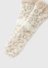 Learn moreKeep your feet cosy and stylish in these adorable cream and gold lurex, animal print slipper socks. Made from a soft and fluffy fabric, these socks are perfect for lounging around the house or popping on after a long day.
