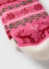 Ladies, keep your feet warm and stylish with our premium 1 Pack Pink Fairisle Slipper Socks. Cosy and snuggly, these slipper socks are crafted from the finest materials, ensuring all-day comfort. The striking fairisle pattern in vibrant red adds a touch of sophistication to your loungewear.  Part of our joyful trend, combining warmth, style, and comfort to bring a cosy and vibrant touch to your style.