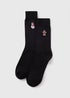 2 Pack Black Christmas Embroidery Socks